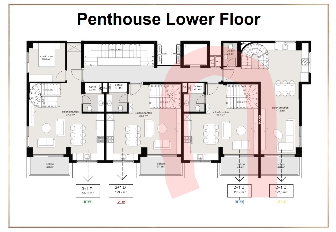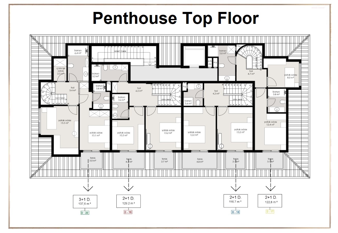 - 3-sovrums penthouses (122 m²): Njut av det ultimata inom lyxliv med dessa expansiva takvåningar i 2 plan, med fantastisk utsikt, förstklassig finish och extra utrymme för avkoppling och underhållning.